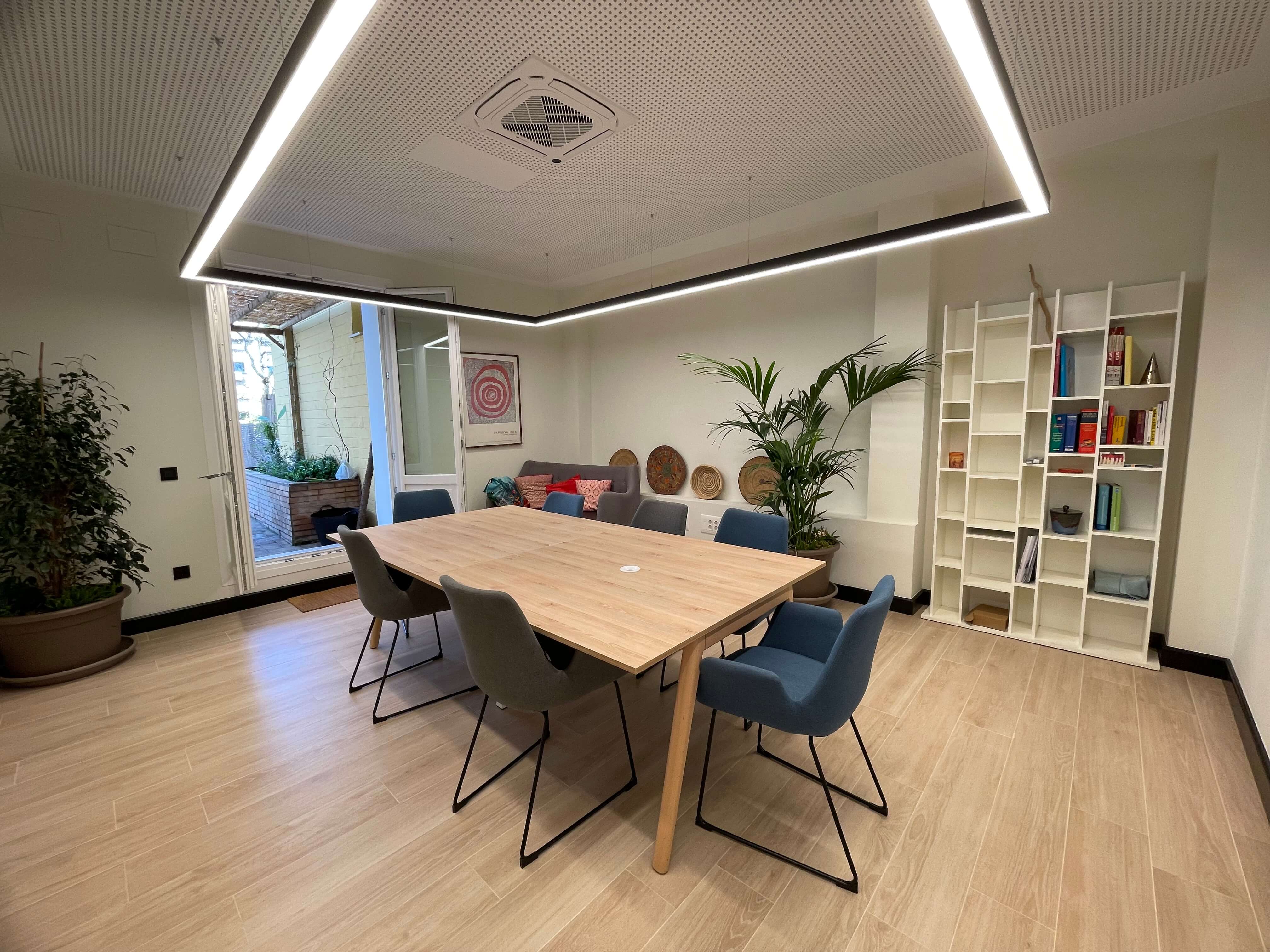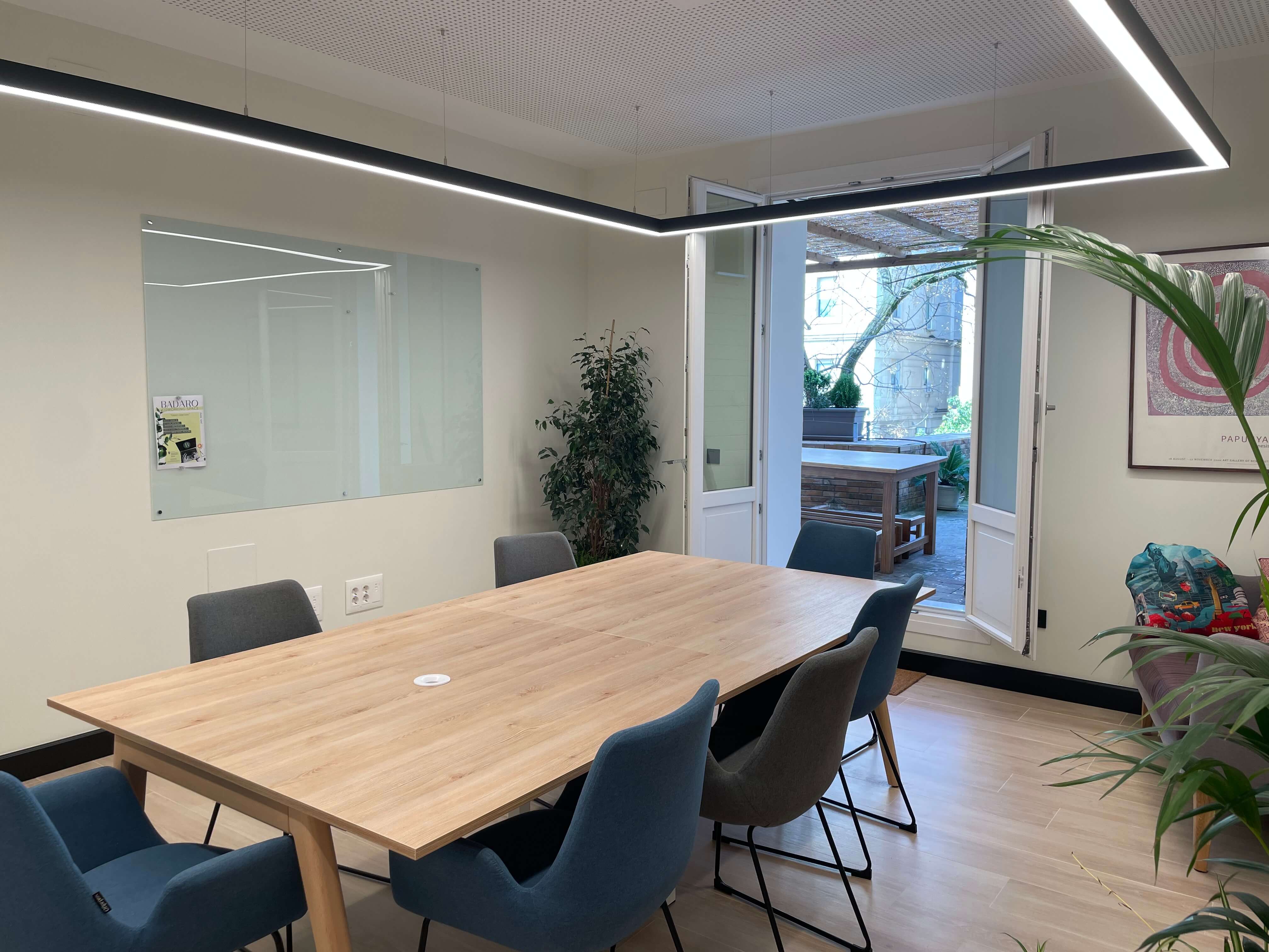 Nuestra sala de reuniones, amplia y luminosa, con acceso a la terraza, está disponible sin coste para todos los coworkers. Un espacio profesional y acogedor para reuniones e intercambio de ideas.